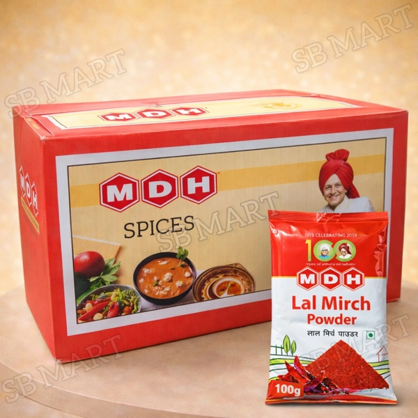 Spice up your culinary creations with MDH Mirch Powder, a premium-quality chili powder brought to you by the trusted brand, MDH. Known for its authentic flavor and vibrant color, this 100gm (10N) pack is a must-have for every kitchen. Exclusively available at S.B.MART, this product is perfect for enhancing the taste of your favorite dishes.